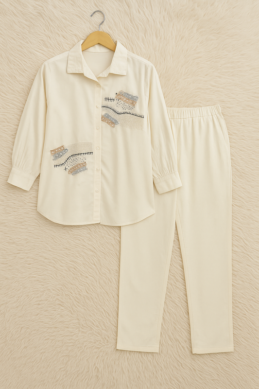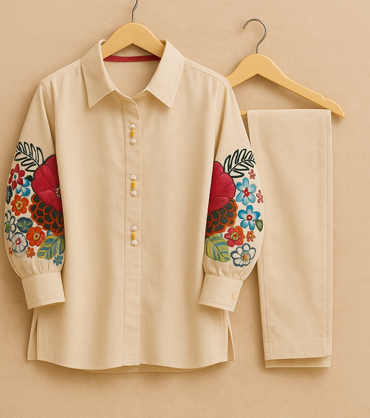 Elegant Embroidered Sleeve Khadi Co-ord Set