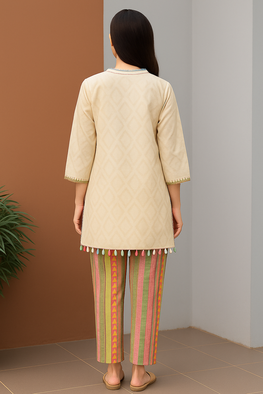 Pastel Embellished Jacquard Cotton Co-ord Set