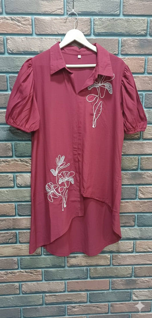 Brown Embroidered Cotton Co-ord Set