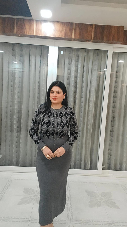 Navy Argyle Knit Skirt Co-Ord Set