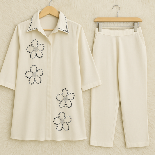 Hand-Embellished Pearl Collar Co-ord Set