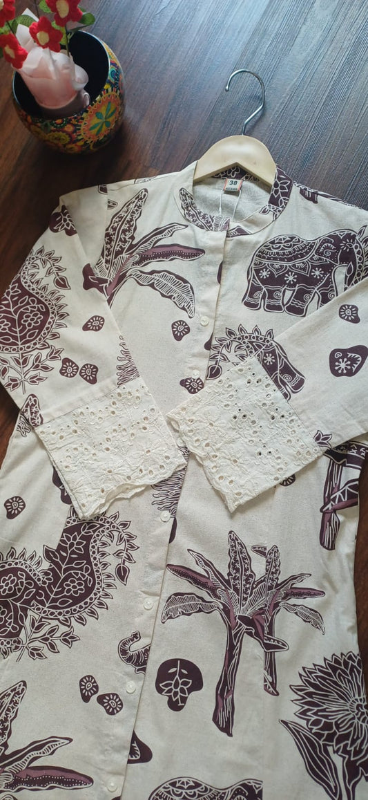 Ivory Handblock Cotton Kurti Dress