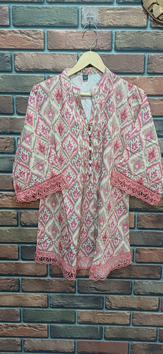 Pure Linen Cotton Handwork Top with Lace Detailing – 31” Length, 3/4th Sleeves
