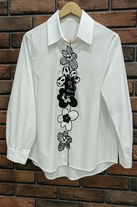 Cotton Shirt with Floral Scalloped Embroidery ,WHITE