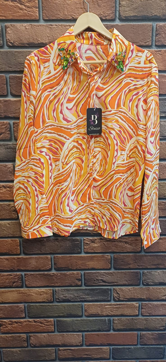 🌈 Tangerine Swirl Embellished Shirt – BStuzio Exclusive