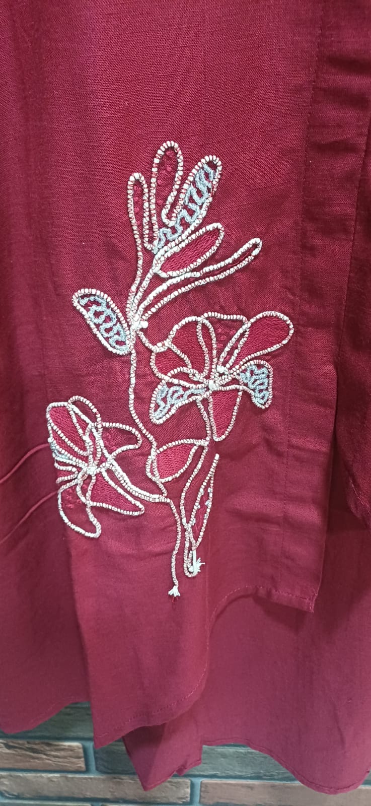 This brick red cotton co-ord set for women is designed for comfort-led style. Crafted from 100% pure cotton, the set includes an embroidered short-sleeve shirt with a collared neckline and an asymmetrical hem, paired with straight-fit pants. The breathable fabric makes it ideal for Indian weather, while the subtle embroidery adds a refined ethnic-modern touch.