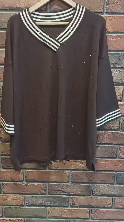 Designed in a breathable soft knit fabric, this top offers a relaxed fall that flatters all body shapes. Subtle swarovski detailing adds a touch of understated glam, making it ideal for pre-winter wear, casual outings, or layering under jackets and blazers.